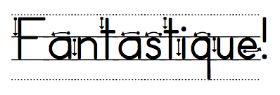 Voici une police d’écriture en script avec trottoirs qui démontre aux élèves où débuter le tracé de chaque lettre; un apprentissage essentiel et parfois difficile pour certains qui sont tentés de débuter par le bas!