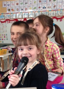 Élèves de la maternelle à la 3e année faisant de la lecture en karaoké.